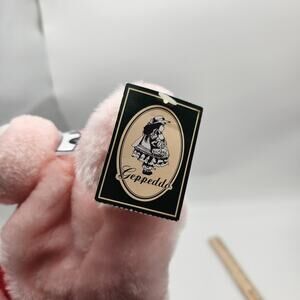 Features gentle pink plush 'pig' character with large pink-and-black cartoon eyes and floppy ears. Classic Geppeddo hang tag and sewn Axis Corporation label present.