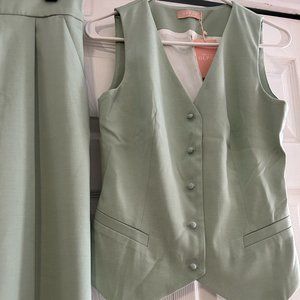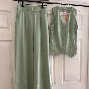 Vest top and trouser set in light green by Ukranian brand Gepur.