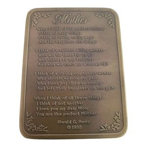 Gerald C Henry Solid Bronze 14oz Mother Plaque Paperweight Swan Perfect Mom.