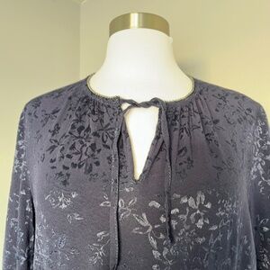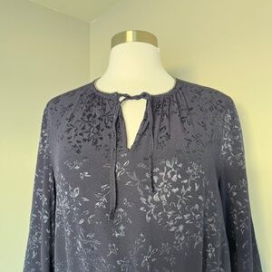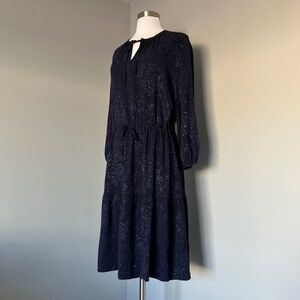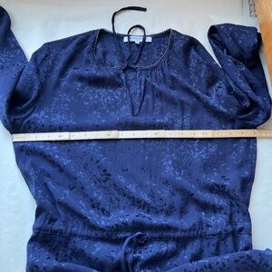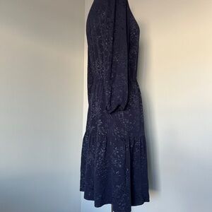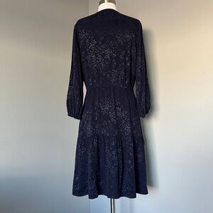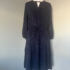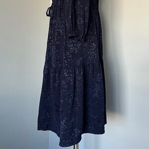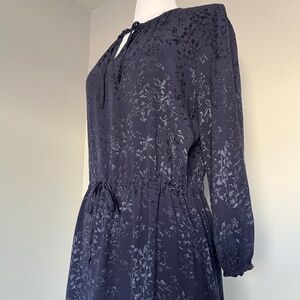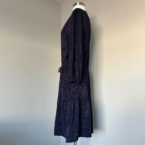 Gerald Darel Layers Gypsy Floral Jeweled Navy Drawstring Long sleeve Midi Dress
