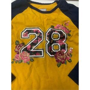 Toddler girls varsity style multicolored graphic long sleeve T-shirt by Geranimals. Toddler girls size 4T.