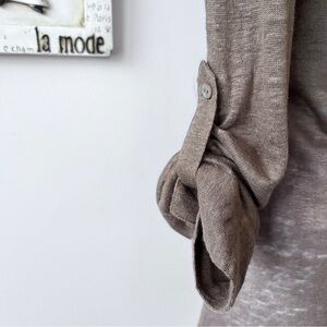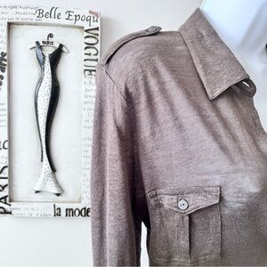 Gerard Darel 100% Linen Mocha Brown Button Down Minimalist Top Size L