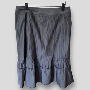 Elegant black skirt with button details. Features front pockets and pleated design. Perfect for any occasion.