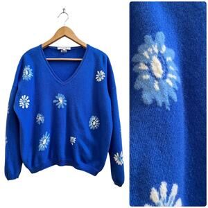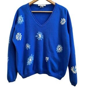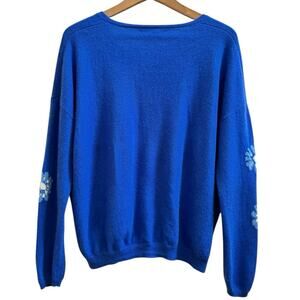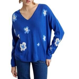Gerard Darel Blue White Floral Leandro 100% Cashmere Neck Sweater Size 3/Large