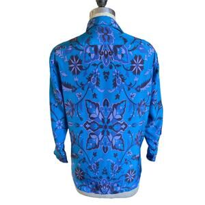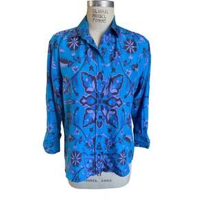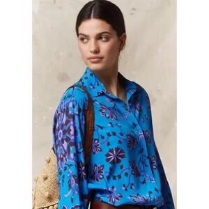 Gerard Darel Emile Floral Silk Button Up Blouse Turquoise FR 36 US 4