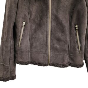 Gerard Darel Jacket Medium Brown Fur Lined Full Zip Pockets Size 42