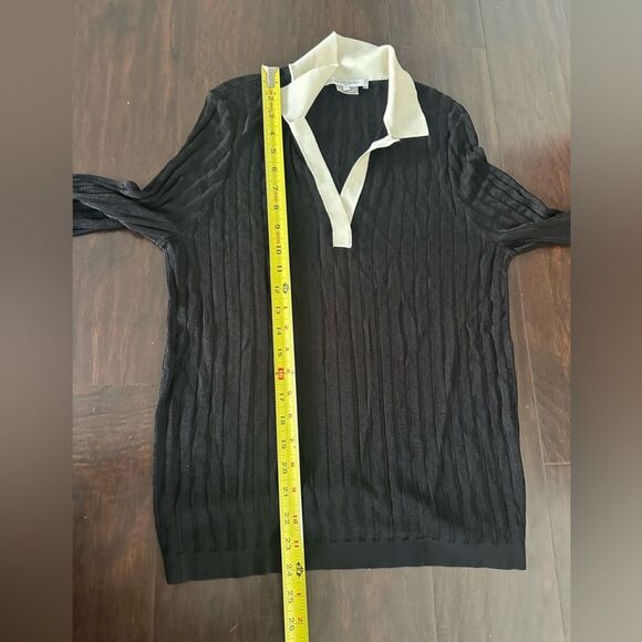 Gerard Darel Long Sleeve Collared Blouse Top Black with White &Red Trim size 2