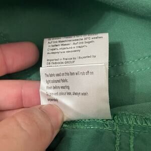 DESCRIPTION: Gently worn cigarette leg pants feature a solid jade green colorway.
