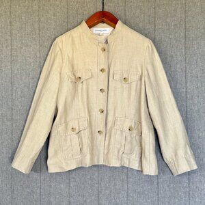 Gerard Darel Paris 100% Linen Oatmeal Light Tan Blazer Utility Jacket Size 14