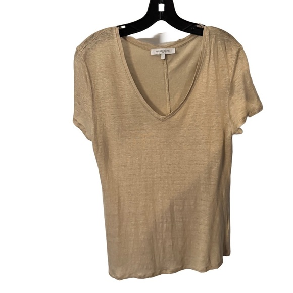 Gerard Darel Paris Shirt Womens Size 2 Tan Tee Shirt V-neck Designer 100% Linen