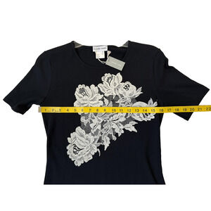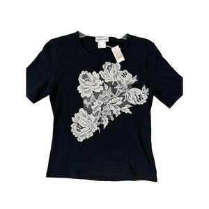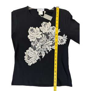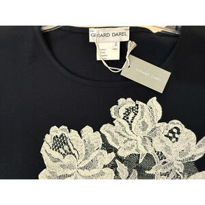 Gerard Darel Shirt Womens Size 2 Black White Floral Lace Applique Made in France
