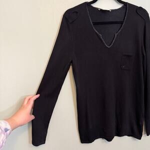Gerard Darel Sweater Women 2 Black Bling Embellished V Neck Long Sleeve Pullover