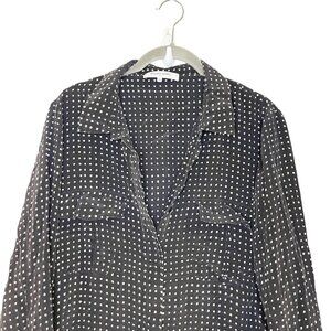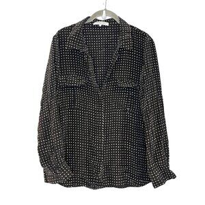 Gerard Darel Womens Silk Button Down Long Sleeves Blouse Black Squares EUR 46