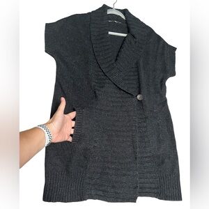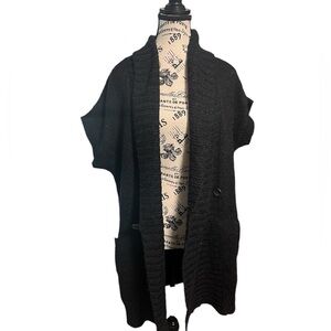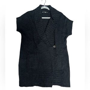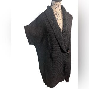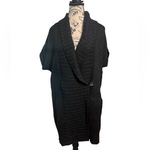 Gerard Darrel Knitwear Short Sleeve Tunic Length Wrap Sweater Cardigan Pockets Alpaca Blend Charcoal Grey color.