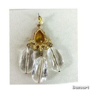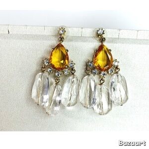 These exquisite earrings feature a captivating blend of gold and silver tones, adorned with sparkling clear crystals. The chandelier design showcases elongated crystal drops, creating a dazzling effect with every movement. Perfect for adding a touch of glamour to any ensemble.