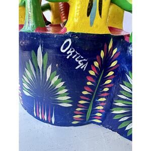 This stunning vintage Mexican folk art pottery piece is a true gem for collectors and enthusiasts alike. Crafted by the talented Gerardo Ortega, this carousel is a beautiful representation of Mexican culture and history. Handmade with precision and care, this piece is a must-have for anyone who appreciates unique and authentic art.