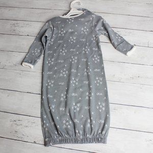 This long sleeve organic sleep gown is gray with off white jungle elephants and trees. The set includes a coordinating hat and booties. The set is brand new and has never been used however please know the price tag has been removed. The outfit is attached to the hanger and is in brand new condition.