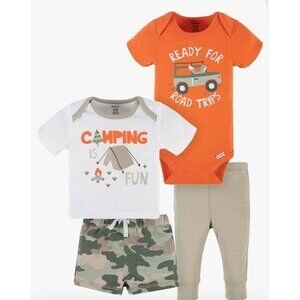 Gerber Baby Boys Camping Fun 4-Piece Bodysuit Tee Shorts & Pant Set NB Cotton
