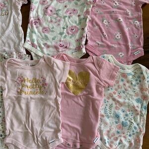 Adorable set of baby girl onesies in pink and floral designs. Features cute prints and patterns. Great used condition, 6-9M.