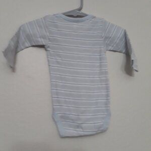 Soft and comfortable bodysuit. Features blue and white stripes. Perfect for everyday wear.