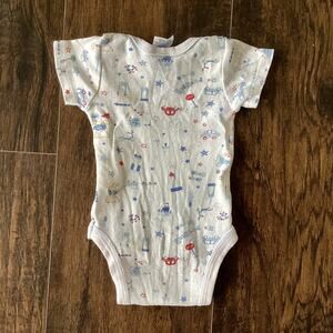 Baby onesie with car pattern all over in very good preowned condition. No flaws. Very light signs of use.