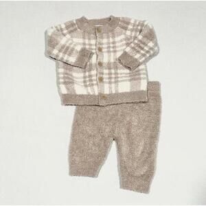 Gerber Gingham Sweater and Pants Set Fuzzy Tan/White Buttons 0-3M Modern Moments