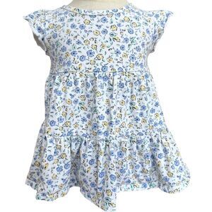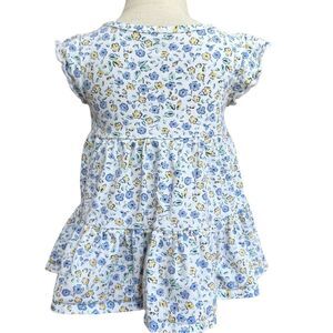 Gerber Girls Blue Flora Print Short Sleeve Colorful Cotton Dress. 18 Months.