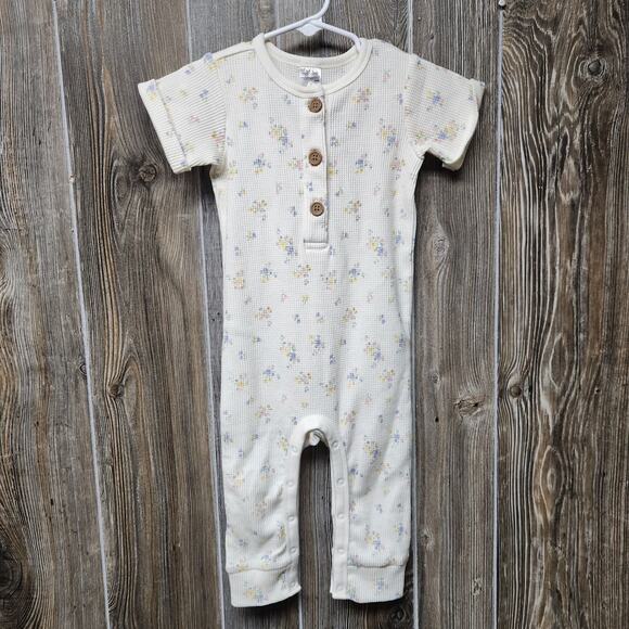 Gerber Modern Moments Cream Floral Romper Coverall Size 18 Months Spring Waffle