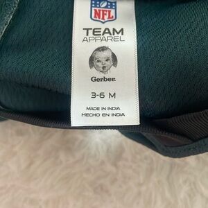 Charming baby outfit by Gerber. Features NFL Team Apparel logo. Ideal for little sports fans.