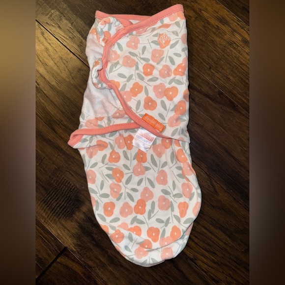 Soft and cozy floral baby swaddle blanket, perfect for keeping your little one snug and comfortable. Features a charming pink and orange floral design. 7lbs-14lbs