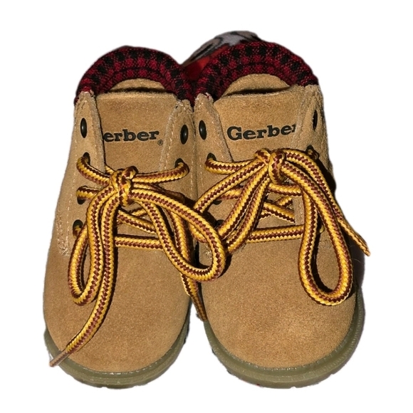 Gerber Toddler Boots Size 4 Tan Suede Plaid Cuff Flex Support System Work Boot
