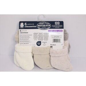 Gerber Wiggle Proof Stay On Infant Bootie Socks 3-6 Months Beige Gray 6 Pack