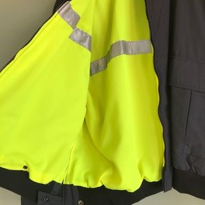 Gerber reversible reflective work outerwear, WSF, brand new with tags, wind breaker, reversible to neon yellow, scotchlite reflective material, features deck dept and initials, pockets