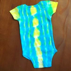 Gerber cotton tie-dye onesie handmade 6-9 months yellow blue