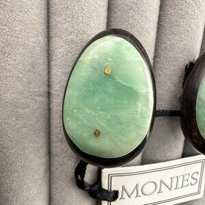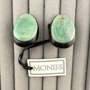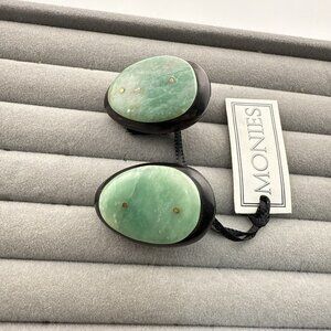 Gerda Lynggaard Monies Earrings Green Stone Wood Oval Chunky Signed w/ Tag