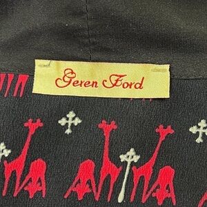 Geren Ford Silk Dress Giraffe Print Size Small Kimono Black Red White EUC