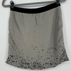 Geren Ford Silk Pleated Grey Dot Splatter Print Mini Skirt