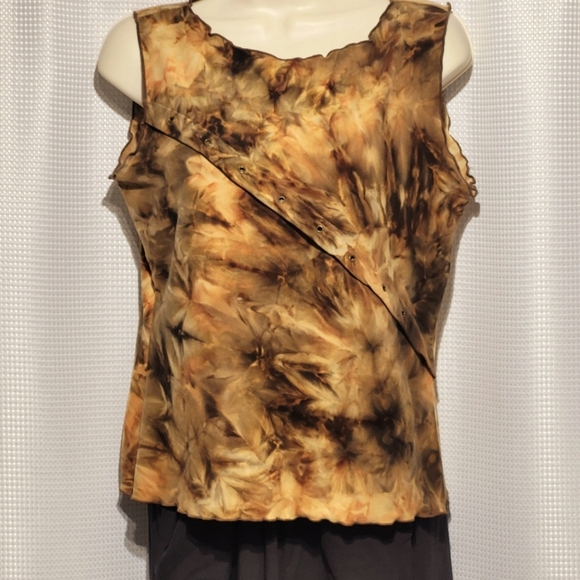 Highlight: feels like suede, scoop neck, detail edging and diagonal grommet accent across the body. This top hugs the body nicely.