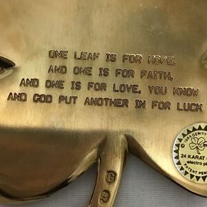 Gerity Four Leaf Clover Paperweight 24K Gold Plate Signed Vintage