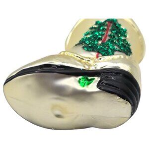 German Gold Cowboy Boot Christmas Tree Ornament Glitter Star Hanger Inge Western