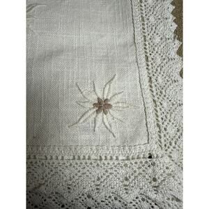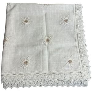German Made Ivory Linen Floral Embroidery Lace Doily Cloth 30.5" X 30.5"