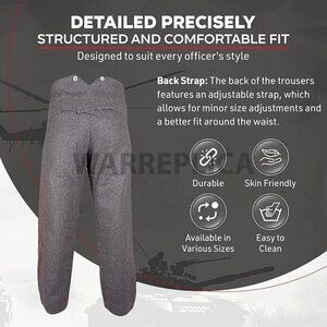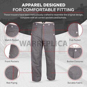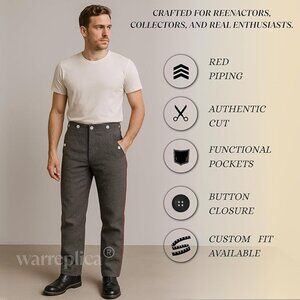 Trousers are an authentic reproduction of the German Army Wool Trousers that were in use during the early 20th century. These trousers have been meticulously crafted to resemble the original design, complete with all correct pockets and buttons.