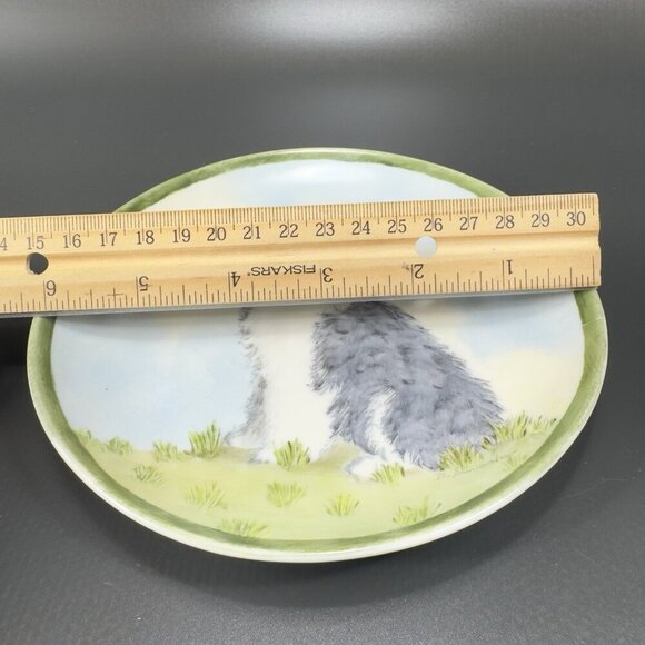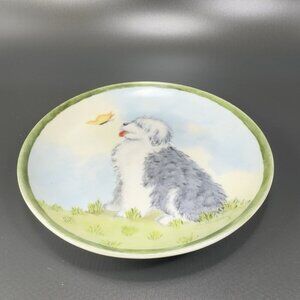 German Porcelain Dish Plate Old English Sheepdog With Butterfly Painted Signed