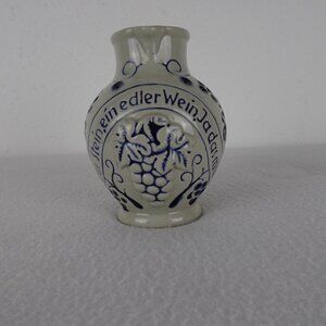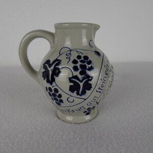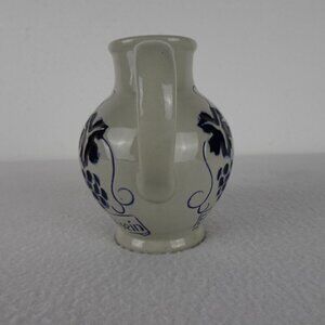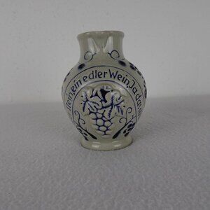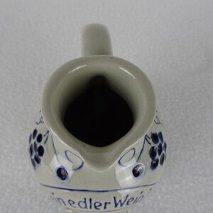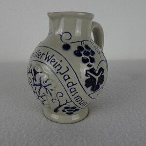 German Salt Glaze Wine Jug Pitcher 4.5" Tall Stoneware Pottery Gray & Blue