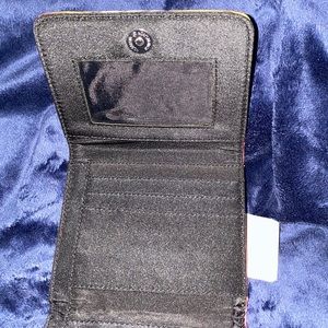 NWT - Trifold cloth and leather wallet. Pictured on a cloth background are 2 German Shepherds with rhinestone collars on the front.