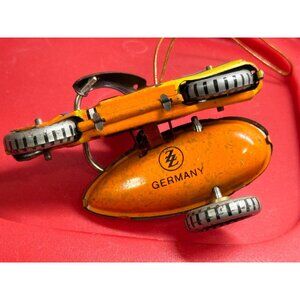 Made in Germany, this vintage tin ornament is a charming piece for collectors. Its vibrant colors and intricate design highlight classic craftsmanship.