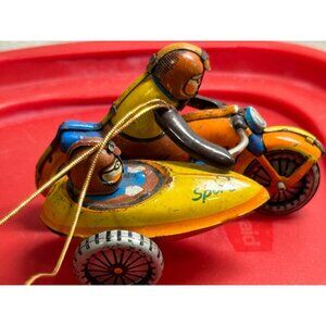 German Tin Motorcycle Sidecar Ornament Z.Z. Germany Tin plates Miniature