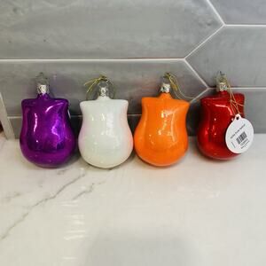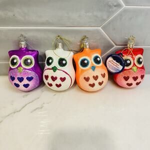 Germany Blown Glass Christmas Ornaments Set Of 4 Owl Colorful Mcm Mod Retro Owls