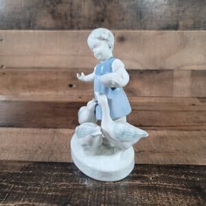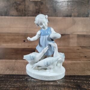 Gerold Porzellan Girl Feeding Geese #5245 Porcelain Figurine Bavaria W. Germany