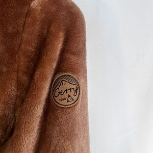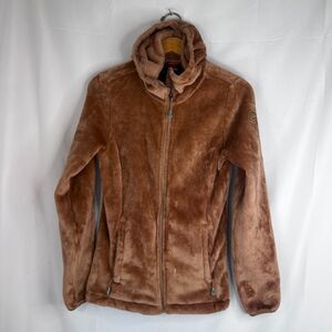 Gerry Brown Fuzzy Hooded Full Zip Sweater Jacket Zip Pockets Size Small